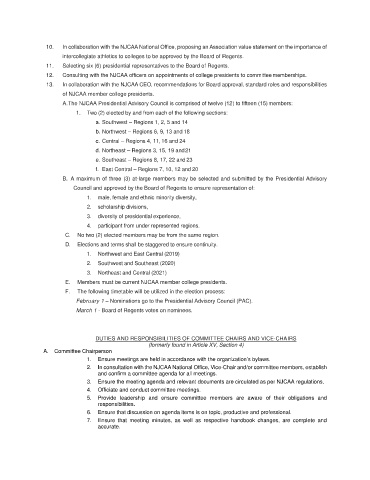 12. Consulting with the NJCAA officers on appointments of college presidents to committee memberships.