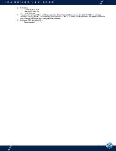 F. The poll voters will submit their top-10 rankings to the NJCAA National Office online system by 1:00 PM ET on Mondays,