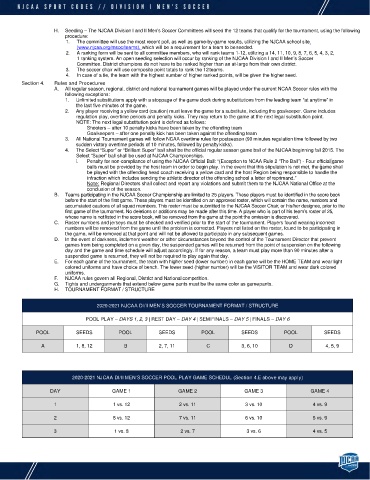 H.  Seeding – The NJCAA Division I and II Men’s Soccer Committees will seed the 12 teams that qualify for the tournament, using the following