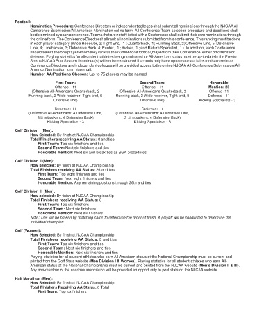 Conference Submission/All-American Nomination online form. All-Conference Team selection procedure and deadlines shall