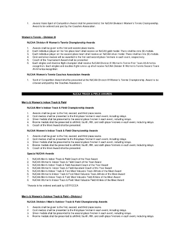 1. Spirit of Competition Award shall be presented at the NJCAA Division III Women’s Tennis Championship. Award to be