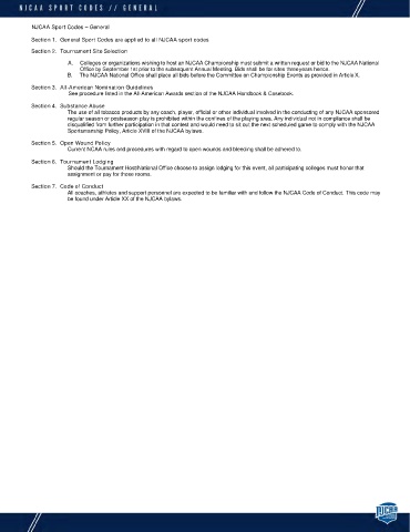 Section 1. General Sport Codes are applied to all NJCAA sport codes