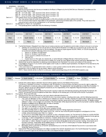 2020-2021 NJCAA DI BASEBALL DISTRICTS