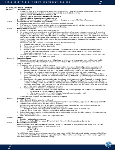 B. No contestant shall be permitted to enter an NJCAA Championship Bowling Tournament unless accompanied by (1) a coach or