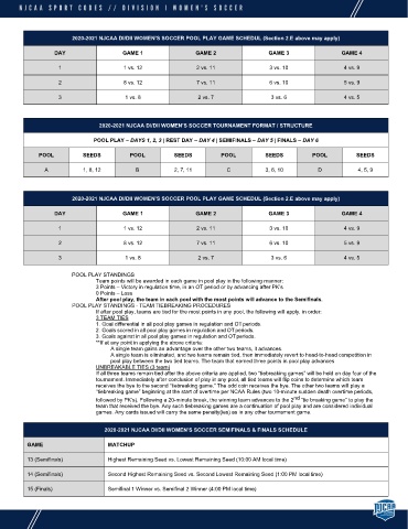 2020-2021 NJCAA DI/DII WOMEN’S SOCCER POOL PLAY GAME SCHEDUL (Section 2.E above may apply)