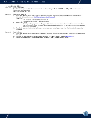 The dates for the tournament shall be recommended to the Board of Regents by the NJCAA Beach Volleyball Committee and the