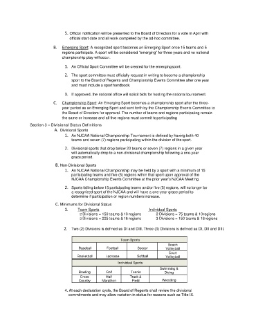 2. Divisional sports that drop below 20 teams or seven (7) regions in a given year