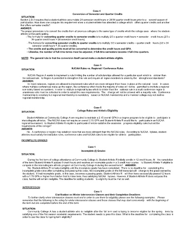 participation. How does one compute this requirement when a student-athlete has attended a college which offers quarter credits and another