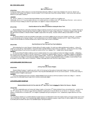 from the three (3) credit hour class, is left with enrollment in 11 credit hours. Student-Athlete R becomes immediately ineligible for participation.