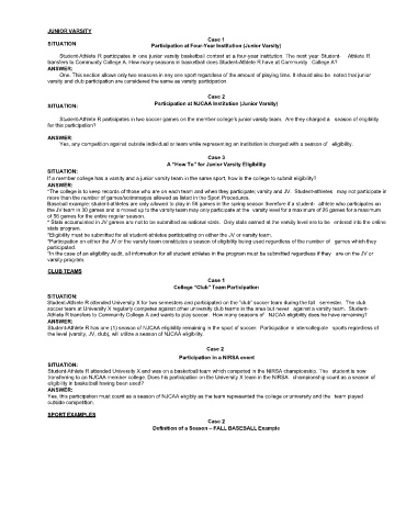 SITUATION: Participation at NJCAA Institution (Junior Varsity)