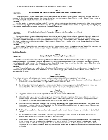 the reason of the forfeiture, the name of the student, etc. The National Office would like to see at least the name of the sport and