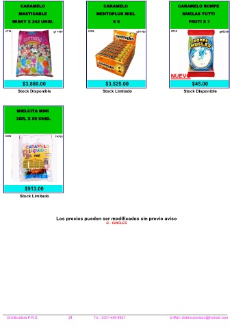 Distribuidora P.R.O. 24 Tel.: 0351-458-8927 E-Mail: distribuidorapro@hotmail.com