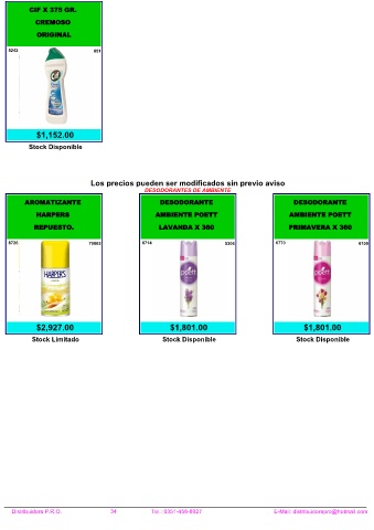 Distribuidora P.R.O. 34 Tel.: 0351-458-8927 E-Mail: distribuidorapro@hotmail.com