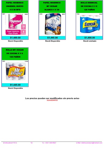 Distribuidora P.R.O. 42 Tel.: 0351-458-8927 E-Mail: distribuidorapro@hotmail.com