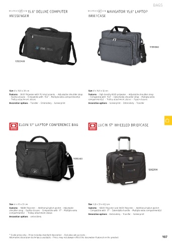 compartment(s) Trolley attachment sleeve Decoration options Embroidery Transfer Screenprint