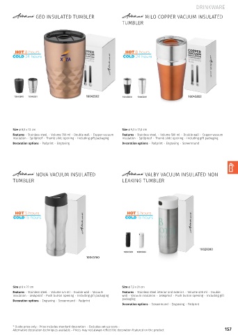 Features Stainless steel. Volume 350 ml Double wall Copper vacuum Features Stainless steel. Volume 590 ml Double wall Copper vacuum
