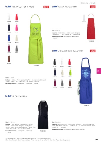cotton. Fabric quality 280 g/m2 60 degrees wash Adjustable neck strap Length 96 cm Tie closure 2 x 100 cm Neck