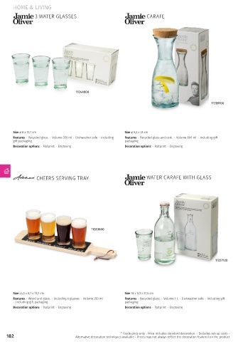 Features Wood and glass. Including 4 glasses Volume 250 ml Features Recycled glass. Volume 1 L Dishwasher safe Including gift