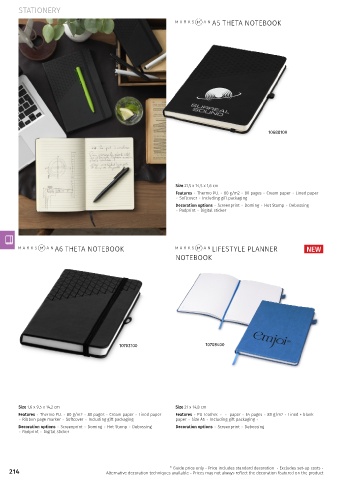 Features Thermo PU. 80 g/m2 80 pages Cream paper Lined paper Features PU Leather. paper 64 pages 80 g/m2 Lined + blank