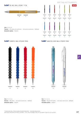 Features ABS plastic and aluminium. Click action mechanism Refillable