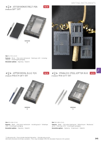 Features Metal. Click action mechanism Including pouch Parkertype Features Metal. Click action mechanism Ballpoint pen Mechanical