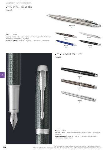 Features Metal. Click action mechanism Parkertype refill Refill black