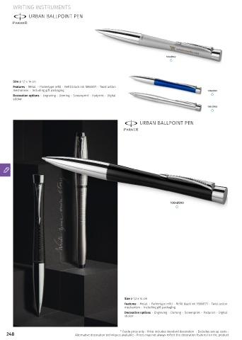 Features Metal. Parkertype refill Refill black ink 18969271 Twist action