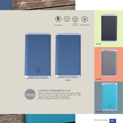 Leather Powerbank with 6000mAh capacity. Li-polymer battery,