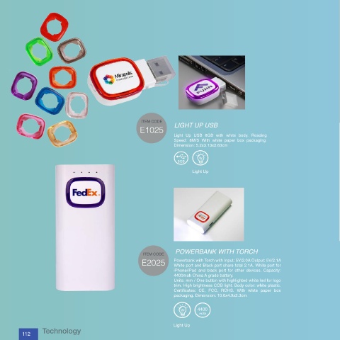 E2025 Powerbank with Torch with Input: 5V/2.0A Output: 5V/2.1A