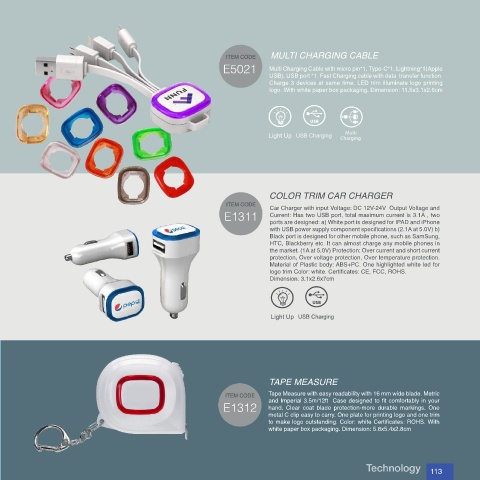 E5021 Multi Charging Cable with micro pin*1, Type-C*1, Lightning*1(Apple