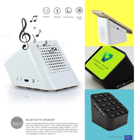 E5030 Wireless Speaker with prime function as bluetooth speaker, mobile holder E5013 Suction Cup Bluetooth Speaker. Easy to connect with all smartphones