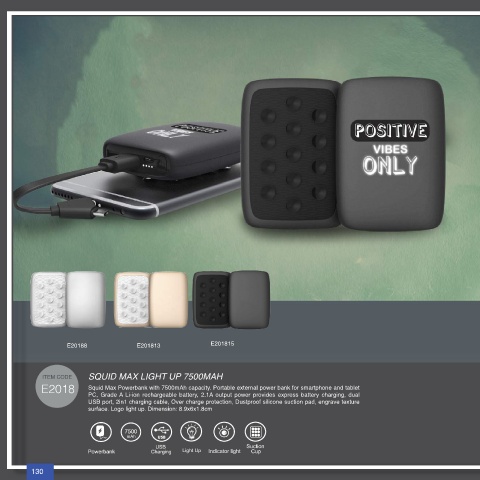 E2018 Squid Max Powerbank with 7500mAh capacity. Portable external power bank for smartphone and tablet