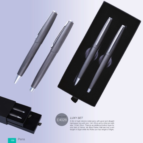 E4028 A Set of matt chrome metal pens with good and elegant plated. Parker type ballpoint blue ink refill. Weight:39gms