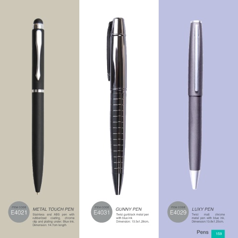 E4021 Stainless and ABS pen with E4031 Twist gunblack metal pen E4029 Twist matt chrome