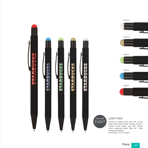 E4020 Stainless and ABS pen with rubberized polybag packaging.
