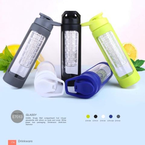 E7013 550ML Single Wall compartment fruit infuser body has transparent Tritan, Lid with White &
