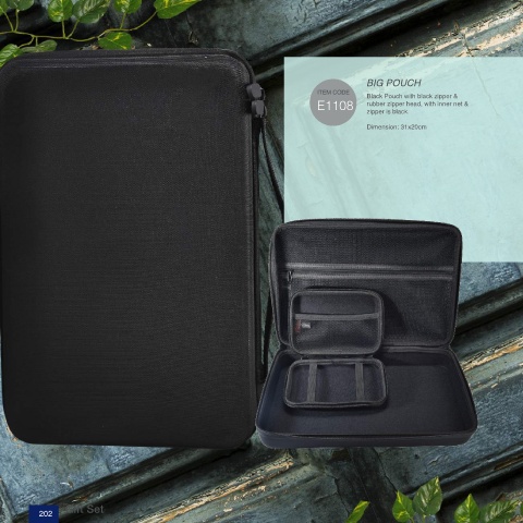 BIG POUCH Black Pouch with black zipper & E1108 rubber zipper head, with inner net & zipper is black. Dimension: 31x20cm Gift Set 202 Final 2019-2_pearl2.indd 202 8/13/18 9:59 AM