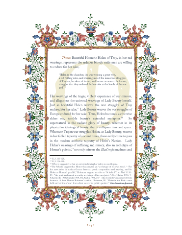 Thesis. Beautiful Homeric Helen of Troy, in her red weavings, represents the arduous bloody strife men are willing to endure for her sake,