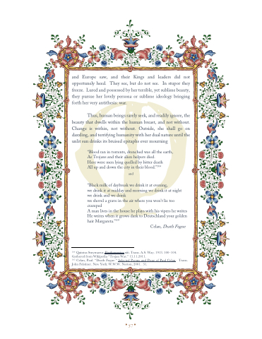 105 Celan, Paul. “Death Fugue.” Selected Poems and Prose of Paul Celan. Trans. John Felstiner. New York: W.W.W. Norton, 2001. 31.