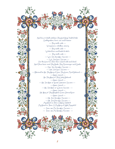And how it shall outshine Thy Last Days’ baleful tide Earthquakes, fires, war and famine
