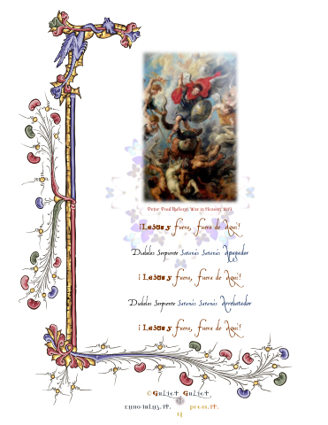 ¡Lejos yFuera, Fuera de Aquì! Diabolos Serpiente Satanás Satanás Apagador ¡ Lejos yFuera, Fuera de Aquì! Diabolos Serpiente Satanás Satanás Arrebatador ¡ Lejos yFuera, Fuera de Aquì!