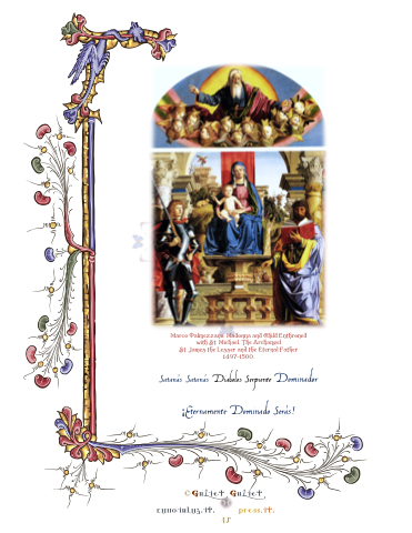 Marco Palmezzano, Madonna and Child Enthroned with St. Michael, The Archangel St. James the Lesser and the Eternal Father 1497-1500. Satanás Satanás Diabolos Serpiente Dominador ¡Eternamente Dominado Serás! © GaLiet GaLiet EunoiaLuZ.it. Press.it. 45