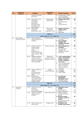 No. Indikator Kondisi Lapangan Nilai