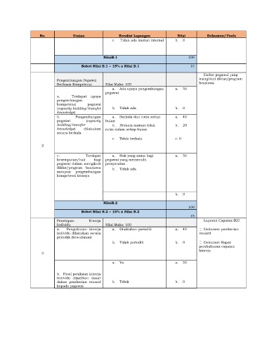 No. Uraian Kondisi Lapangan Nilai Dokumen/Tools