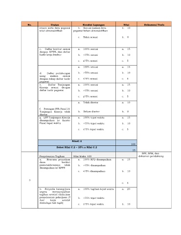g. LPP Tunjangan Kinerja a. 100% tepat waktu a. 15