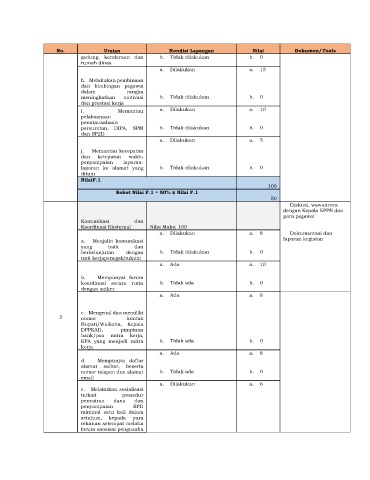 No. Uraian Kondisi Lapangan Nilai Dokumen/Tools