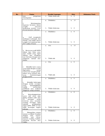 No. Uraian Kondisi Lapangan Nilai Dokumen/Tools