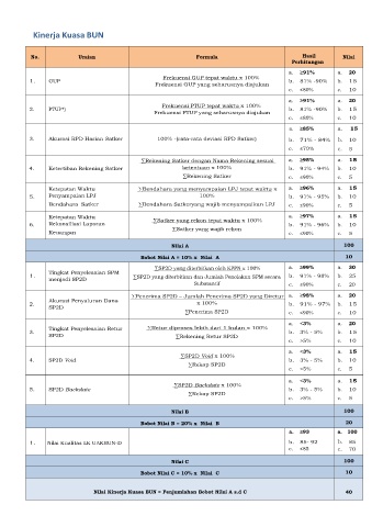 Nilai Kinerja Kuasa BUN = Penjumlahan Bobot Nilai A s.d C 40
