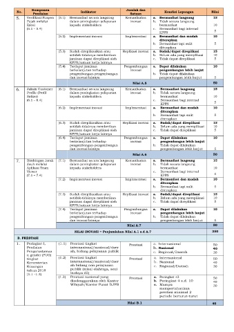 No. Indikator Kondisi Lapangan Nilai