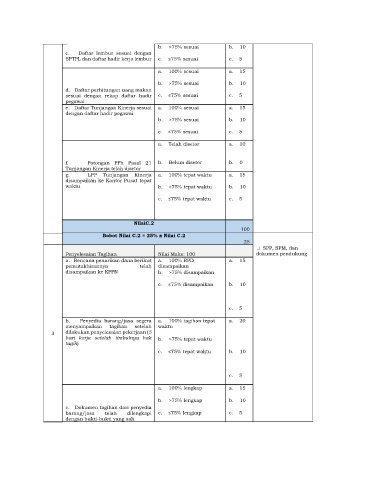 SPTPL dan daftar hadir kerja lembur c. ≤75% sesuai c. 5